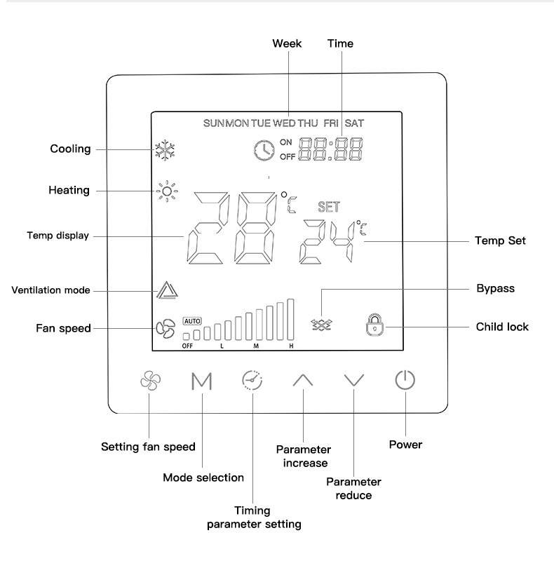 Four wind speed modes: automatic, high speed, medium speed, low speed