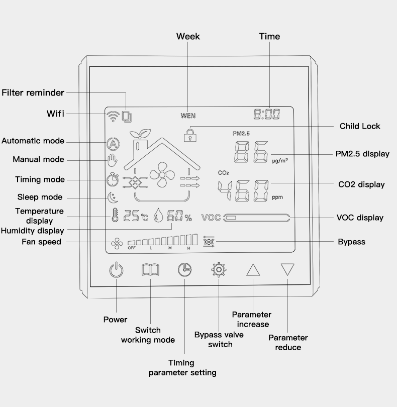 Controllable fan coil unit (thermostat), floor heating version (water heating, electric heating)