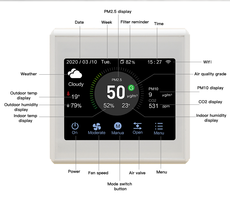 Controllable fan coil unit (thermostat), floor heating version (water heating, electric heating)