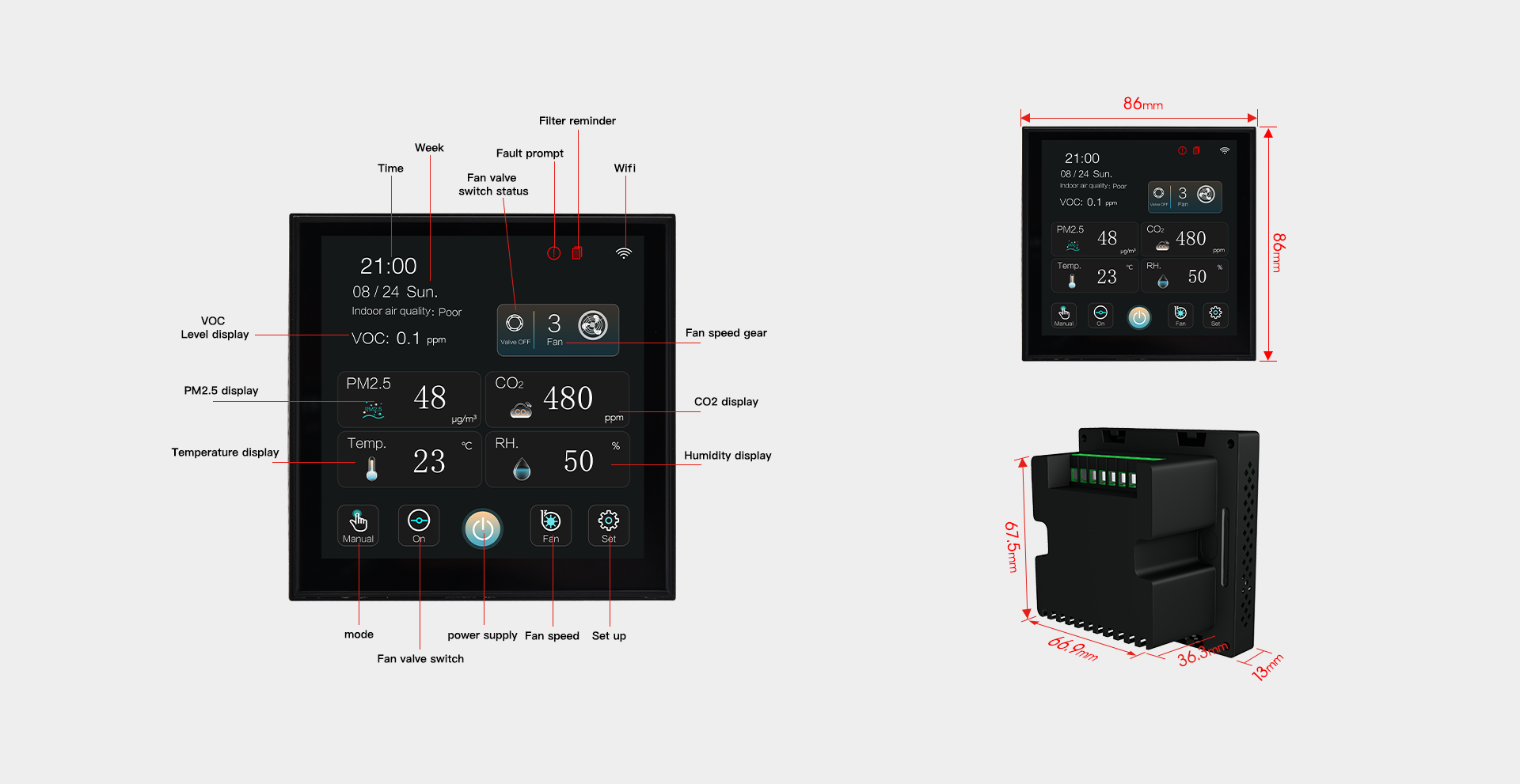 Standard PM2.5 sensor, optional CO2/WIFI/485