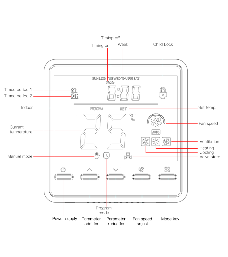 Controllable fan coil unit (thermostat), floor heating version (water heating, electric heating)
