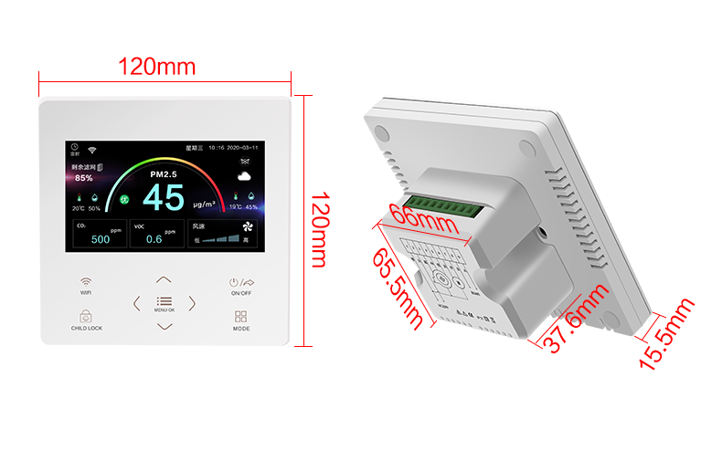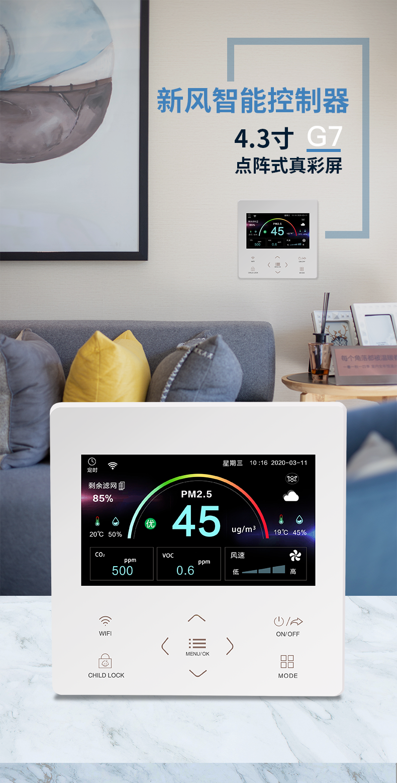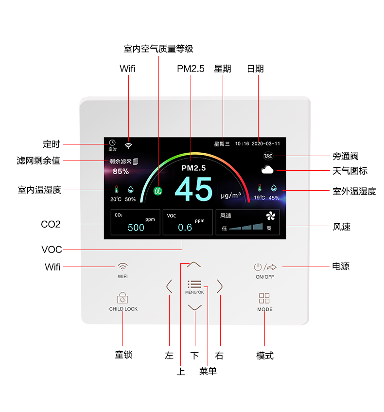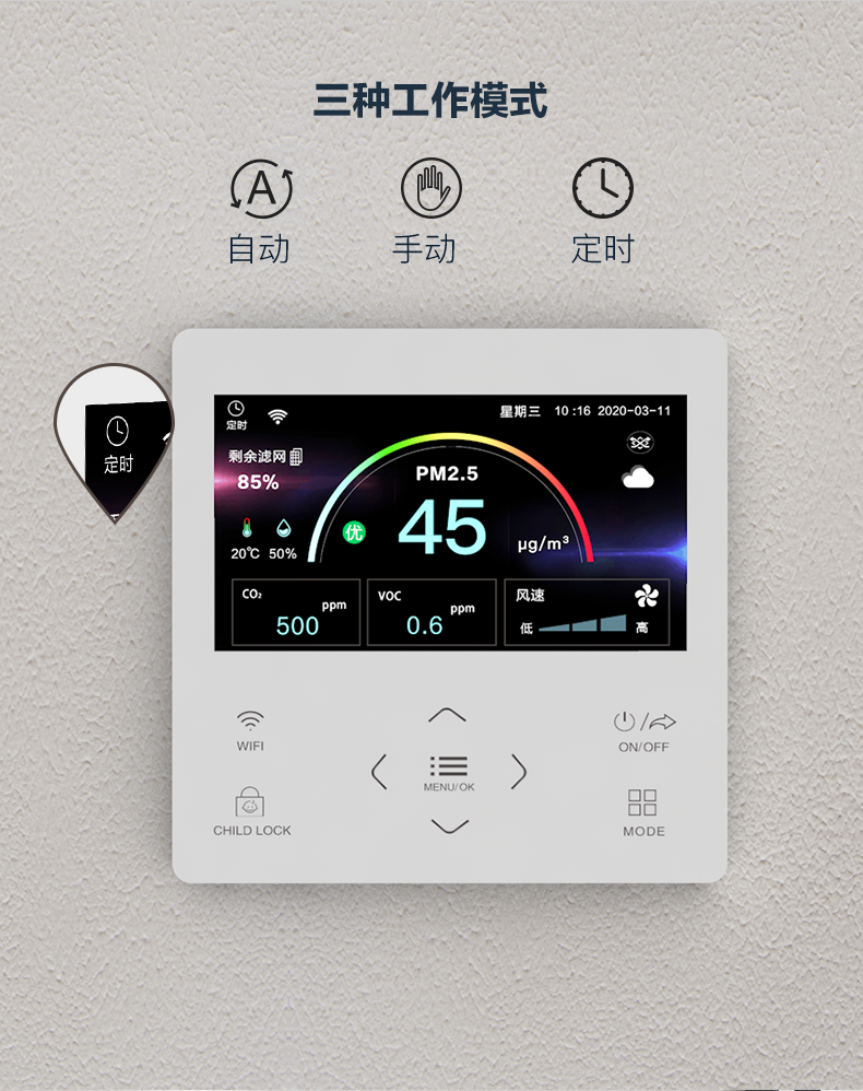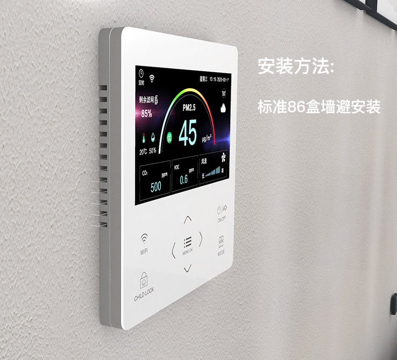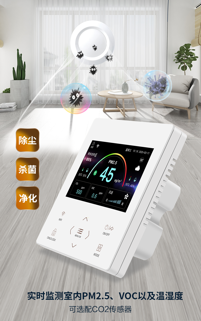 實(shí)時(shí)顯示PM2.5、CO2、TVOC