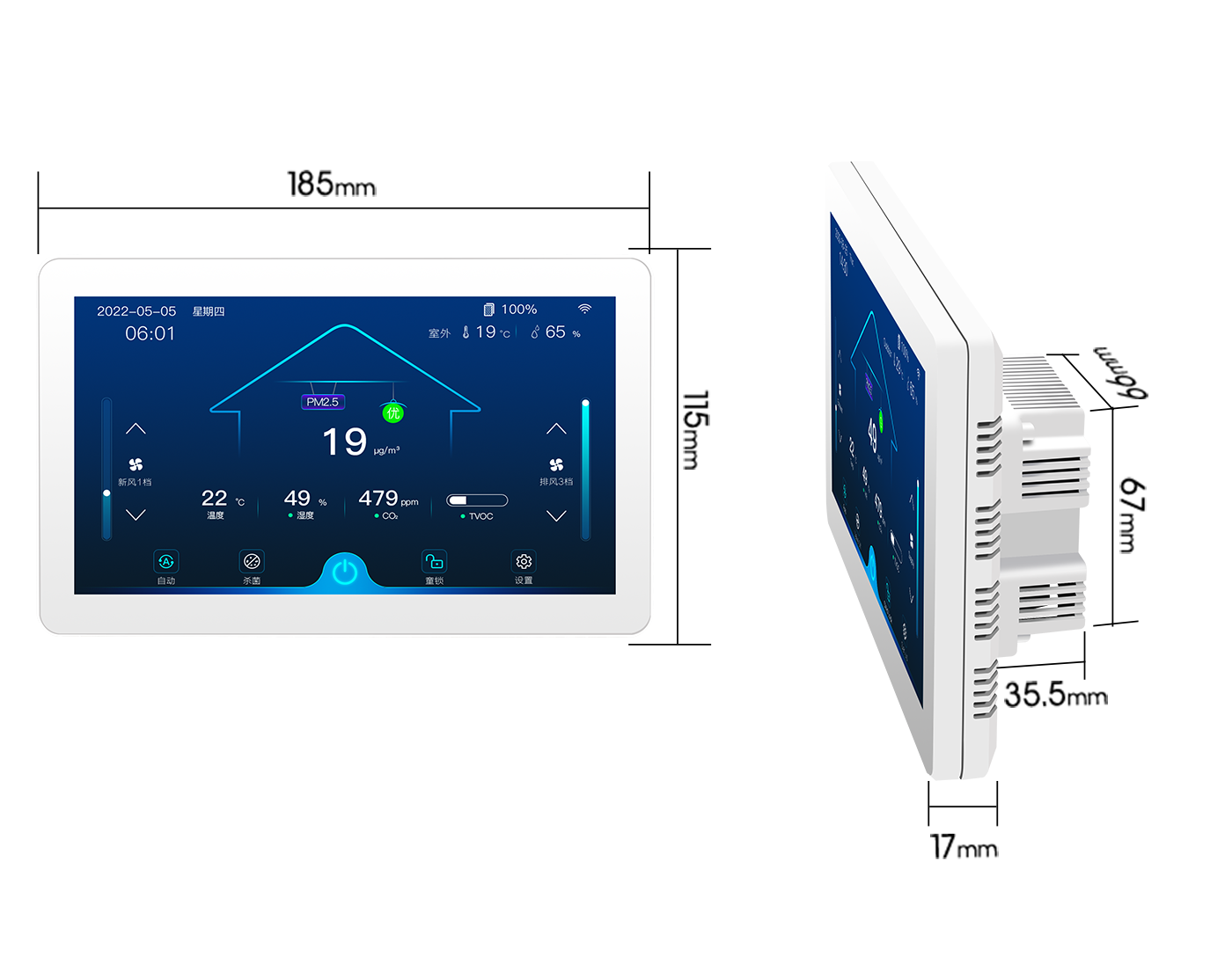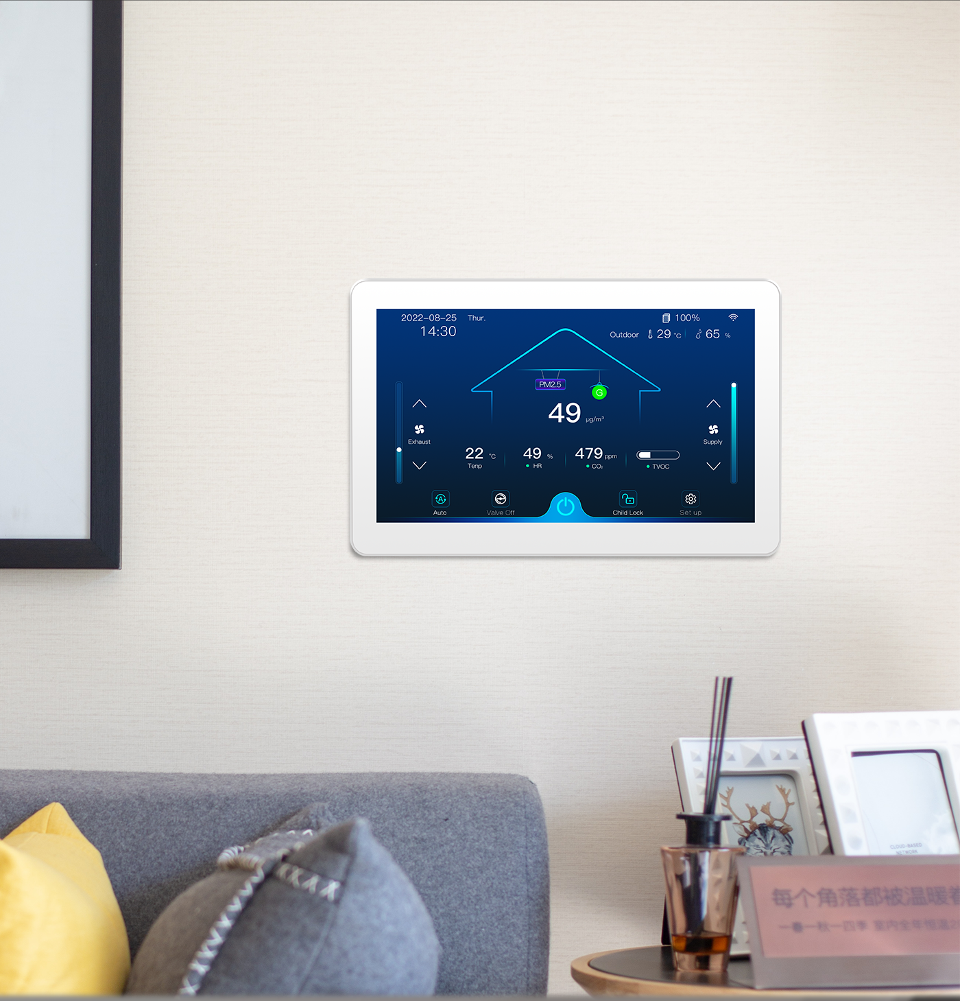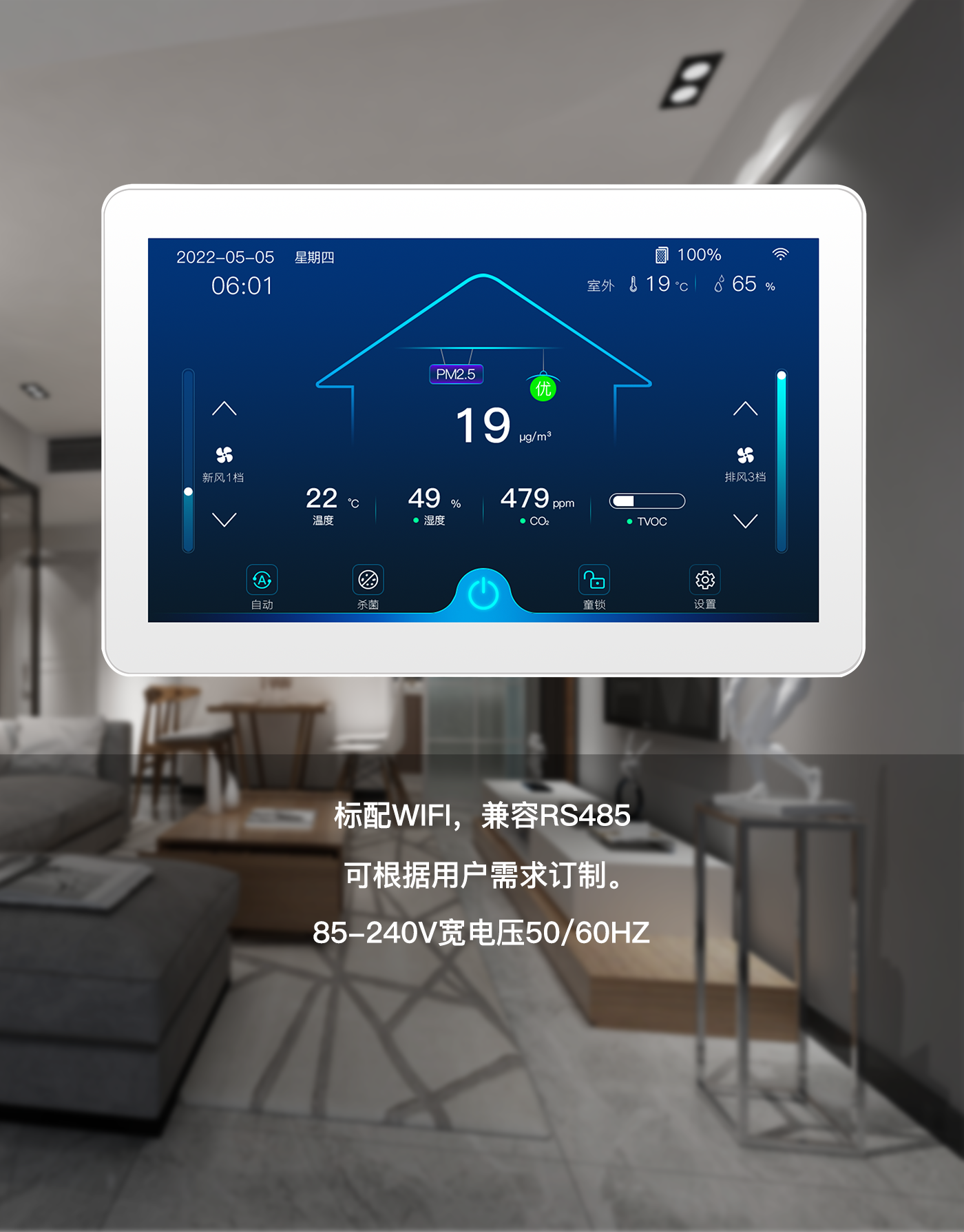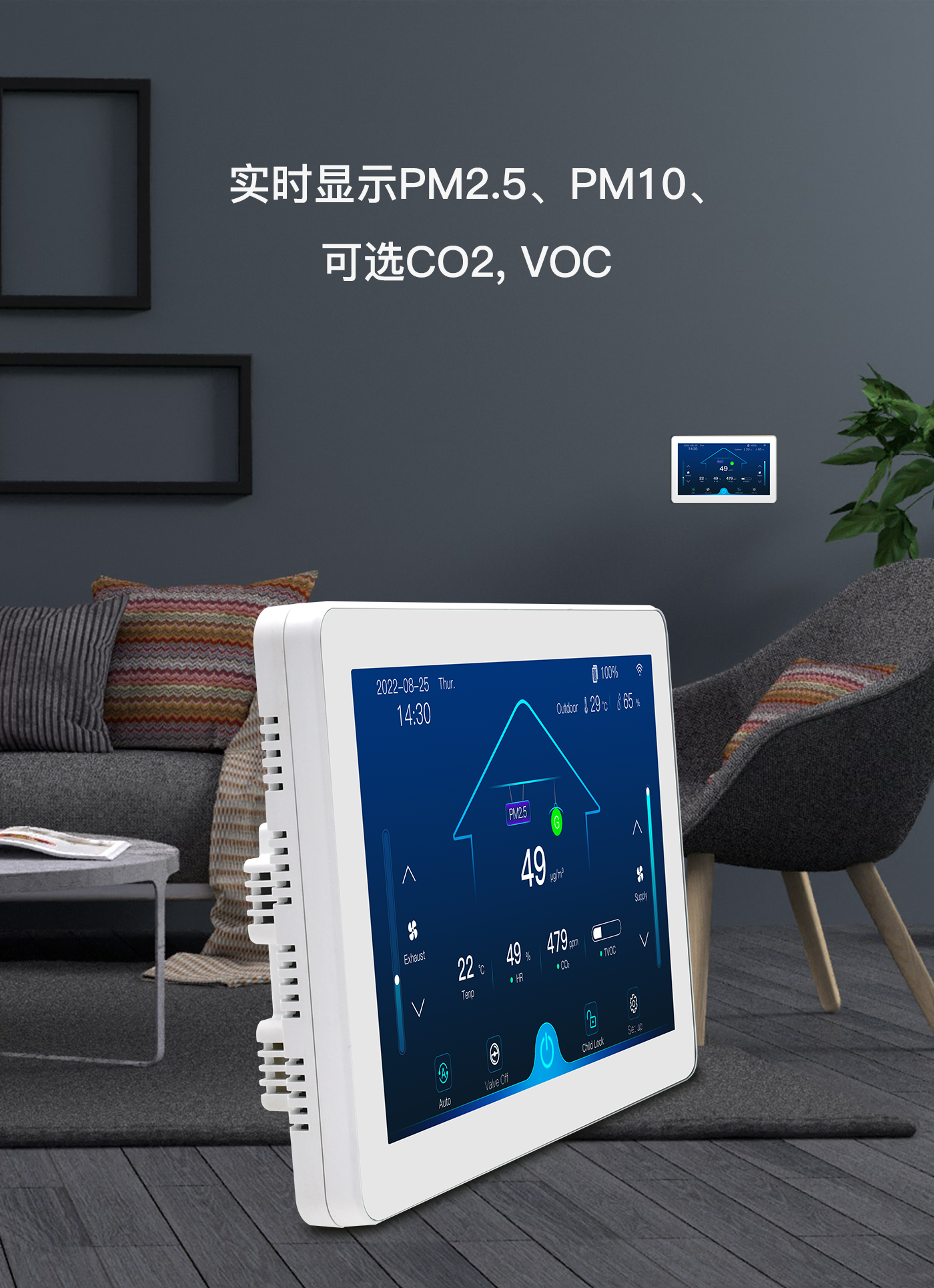 實(shí)時(shí)顯示PM2.5、CO2、TVOC