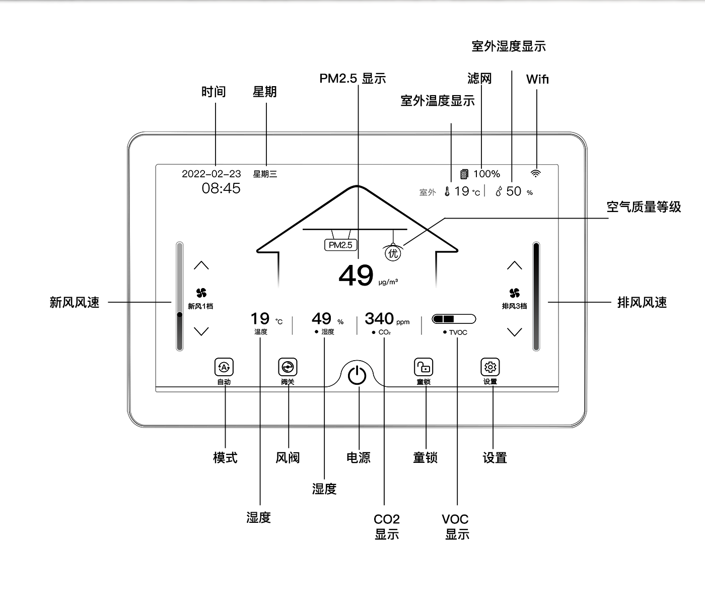 新風(fēng)、除濕聯(lián)動 PM2.5、PM10