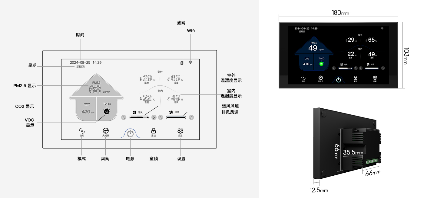 新風聯(lián)動 PM2.5、CO2、TVOC