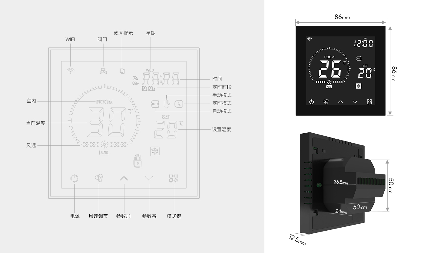 可控制風(fēng)機盤管(溫控器)、地暖版本(水暖、電暖)