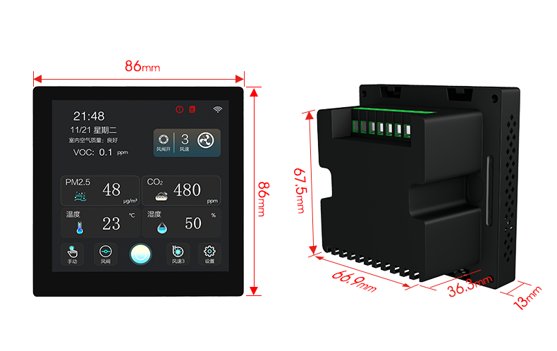 標(biāo)配PM2.5傳感器,可選配CO2/WIFI/485